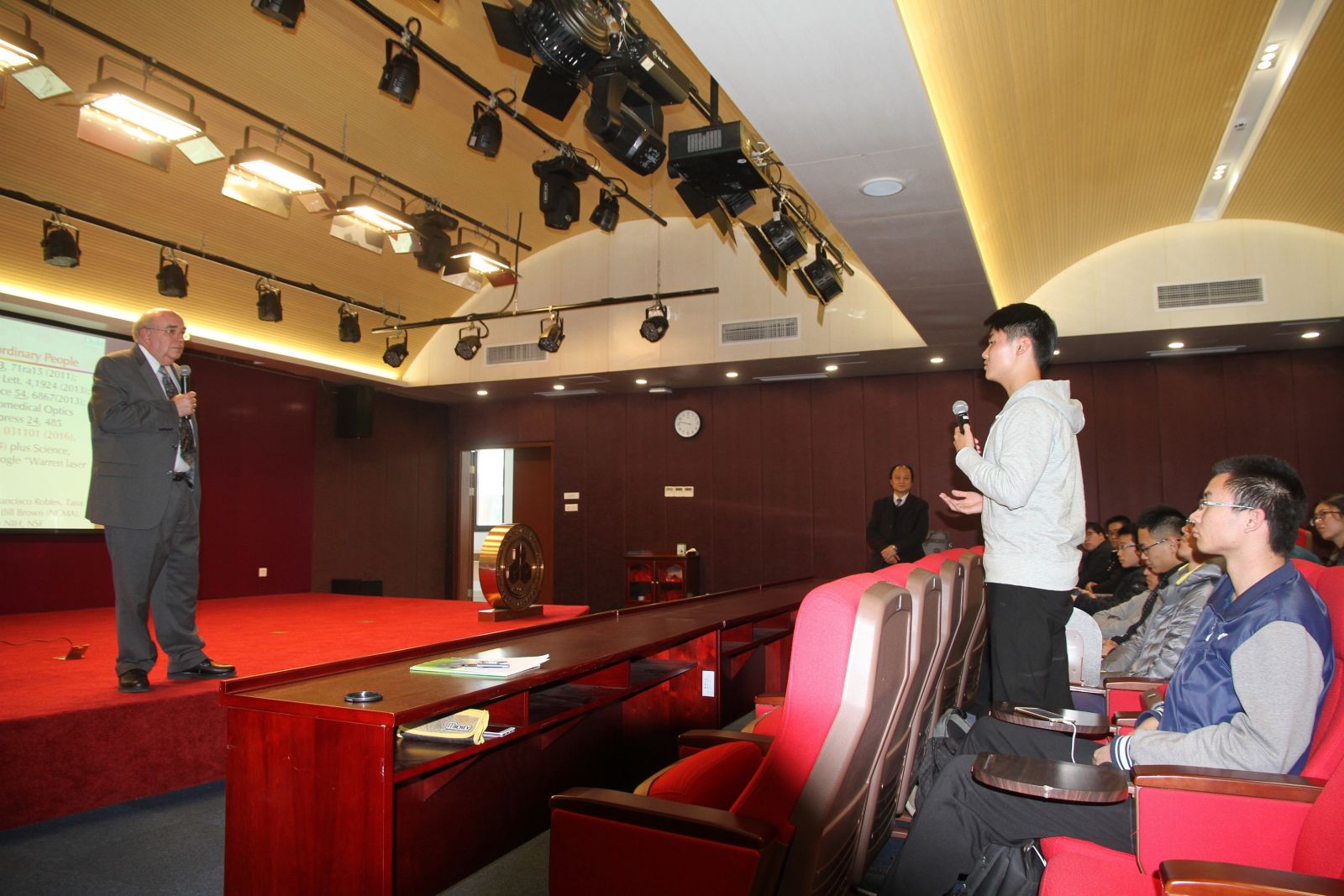 3月6日下午, 杜克大学物理系系主任Warren S. Warren教授来到国生报告厅,给同学们带来了关于美国研究生院及利用泵浦探测技术检测文物的讲座。Warren S. Warren是物理化学方向的教授,由于其杰出的贡献被杜克大学授予James B. Duke Professor的称号。
