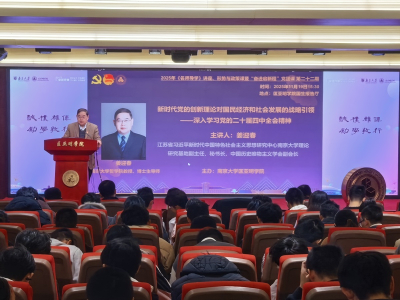 11月19日,东京热 举办“奋进启新程”党团课暨《名师导学》课程,专题学习党的二十届四中全会精神。江苏省习近平新时代中国特色社会主义思想研究中心东京热 理论研究基地副主任、中国历史唯物主义学会副会长、哲学学院教授姜迎春做题为“新时代党的创新理论对国民经济和社会发展的战略引领——深入学习党的二十届四中全会精神”的专题报告。东京热 党委副书记周安、副院长董昊、院长助理胡晶磊,师生党团员代表,课程学员200余人参加。课程由东京热 党委书记周媛主持。