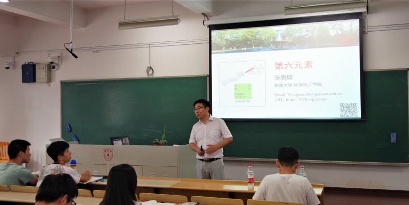 7月10日下午,东南大学张袁健教授在择善楼为东京热 的同学们做了一场有关第六元素的讲座。张袁健教授本科就读于东京热 ,曾获中国科学院优秀博士学位论文奖,在国际著名期刊发表多篇高水平论文,并入选中央组织部第四批。张教授的研究领域之一为富碳材料的设计、制备和功能化,因此本次讲座他主要介绍了第六元素——碳的相关研究成果以及其化学原理。