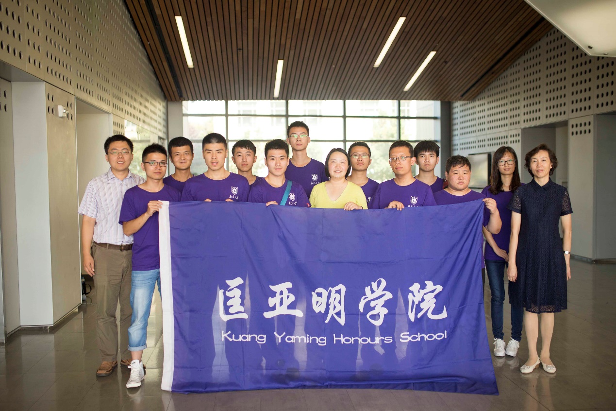 在参观实验室之后,大家在实验楼下的大厅里合影留念: