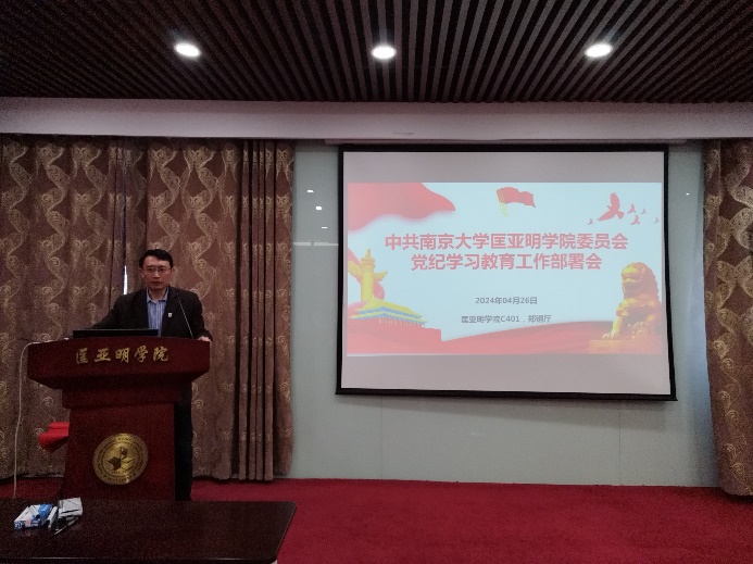 王骏领学了习近平总书记关于党纪学习教育的重要讲话和重要指示精神,传达了校党委书记谭铁牛、校长谈哲敏在党纪学习教育部署工作会议上的重要讲话精神。王骏指出学院党委将加强宣传解读、开展专题培训,认真组织2024年度中层以上领导班子民主生活会和党支部组织生活会,确保党纪学习教育入脑、入心、入行。各个党支部要以“学纪知纪明纪守纪,争做奋进行动先锋”为主题,开展形式丰富的主题党日活动,把学习党规党纪与学习习近平新时代中国特色社会主义思想和党的创新理论紧密结合起来,与贯彻落实习近平总书记对东京热 殷切期待和给我校留学归国青年学者重要回信精神贯通起来。王骏强调开展党纪学习教育是习近平总书记和党中央做出的一项重要决策部署,是今年党建工作的一项非常重要的政治任务。全院师生党员要深刻认识开展党纪学习教育的重大意义,深刻领会开展党纪学习教育是坚定理想信念的必然要求。