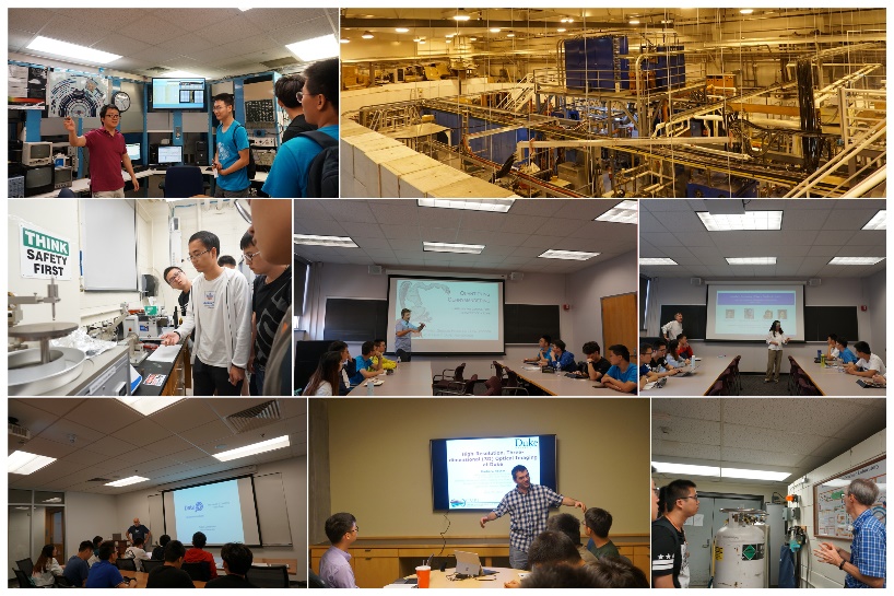 在杜克大学物理系Connie Cox老师的精心安排下,同学们在杜克亦收获了美好而充实的一周。在一周的学习生活中,同学们参与了数十场讲座,从杜克数理化生各学科的基础介绍,到医学物理、统计物理、生物物理、化学生物、机器学习大数据等领域的专业讲座;讲座之外同学们还参观了杜克大学加速器、伽马射线源、材料化学、医学物理、核物理等多个大型实验室。在参观交流中,同学们不仅学习到相关的专业知识,从不同方向的学术讲座中拓宽了自己的学术视野,还在与各位教授交流互动的过程中了解从事科学研究的思维方法,大家在各个实验室中近距离接触到科研工作者的工作环境与日常生活状态,认识到从初步想法到发明创造再到现实应用的流程构架,对“科研”对“学术”这两个词有了更加深刻的理解。