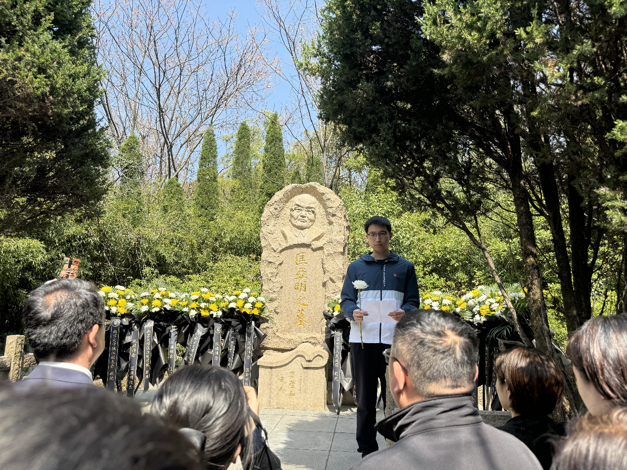文娟:匡老的一生是追求真理、献身教育的一生,从投身革命,到执掌教鞭,他将教育的火种播撒在华夏大地。站在墓碑前,我感受到的不仅是对一位逝者的缅怀,更是一场跨越时空的、关于“知识分子的使命”的对话。参观革命烈士纪念馆时,这些烈士们也曾是和我们一样的青年,有理想、有牵挂,却甘愿为民族解放献出生命。作为当代青年,我们应是红色基因的传承者、时代课题的答卷人。虽然我们或许不再需要抛头颅洒热血,但这份“甘为火柴”的奉献精神,正是学术科研中攻坚克难的动力源泉。