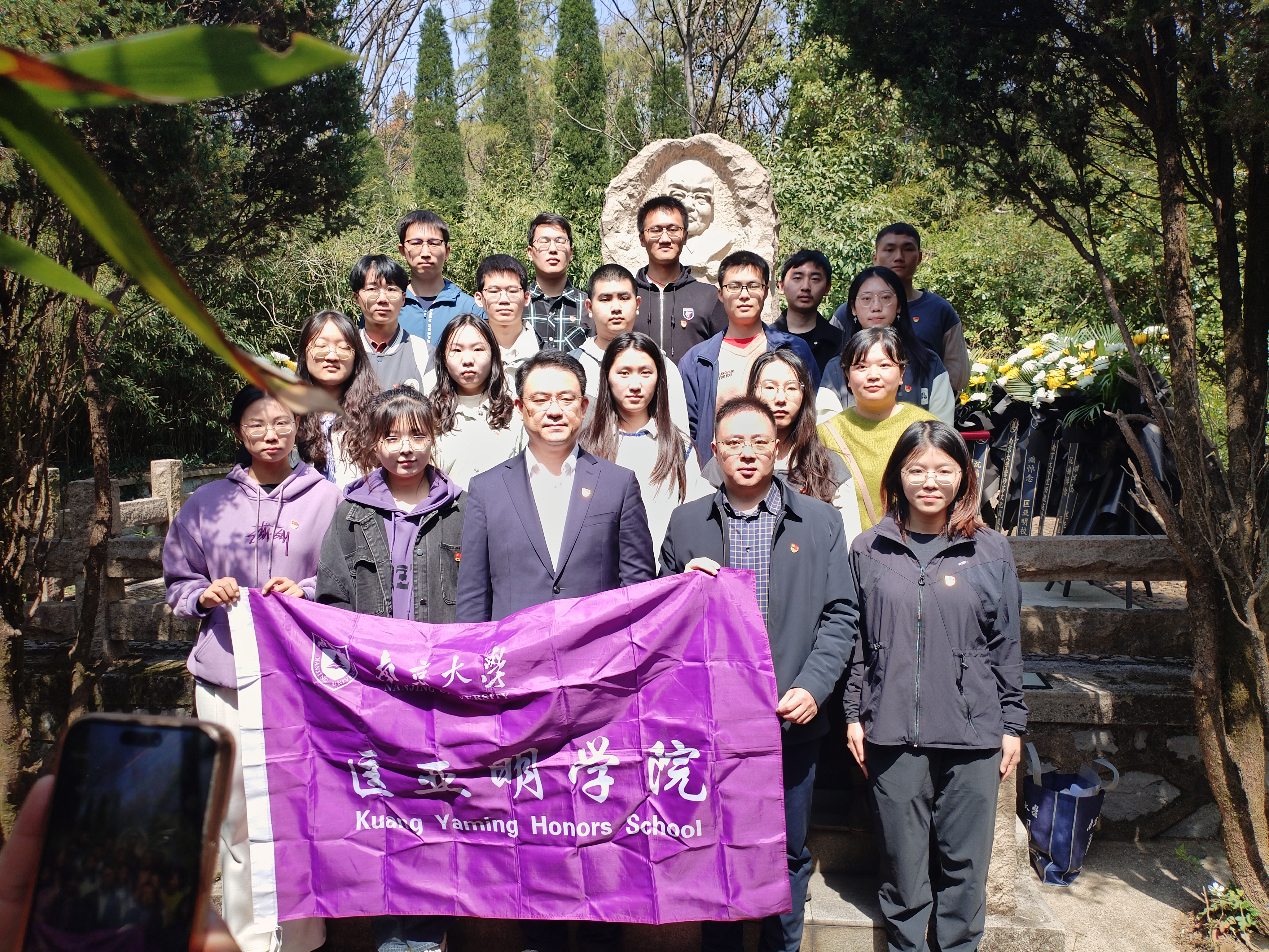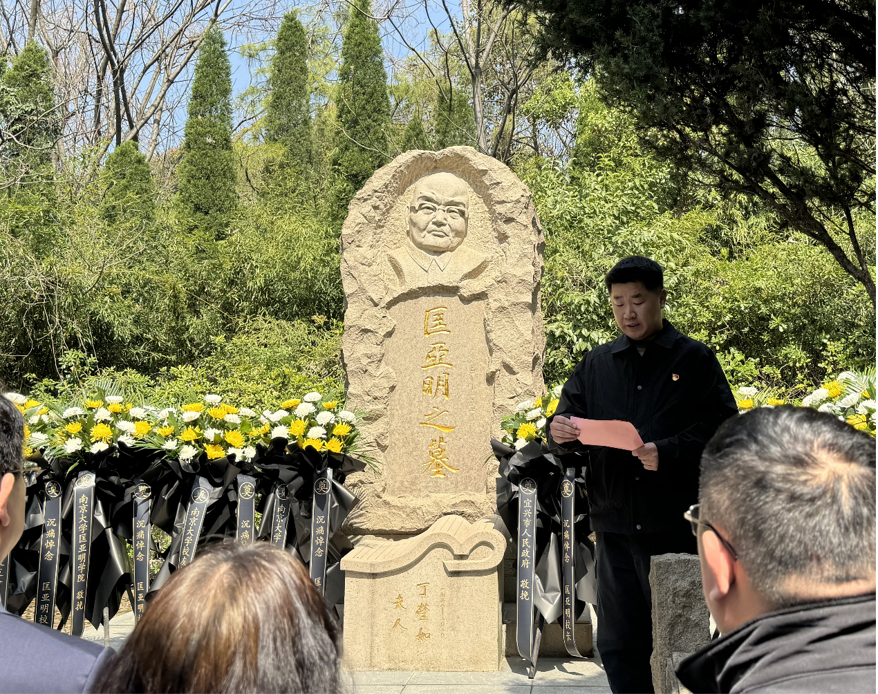 活动伊始,全体在匡亚明校长墓碑前庄严肃立,沉重默哀,敬献花篮,三鞠躬,深切缅怀匡亚明校长。
