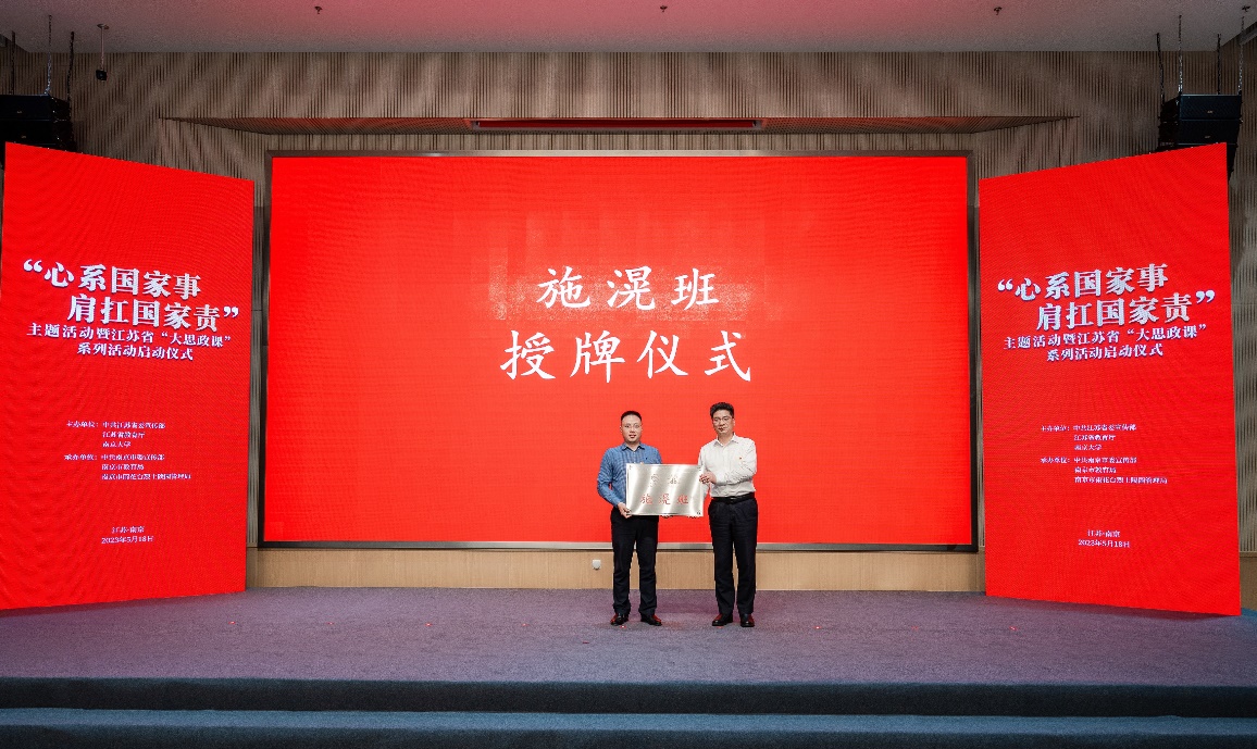 为进一步弘扬雨花英烈留学报国精神,雨花台烈士纪念馆馆长刘斌向东京热 党委副书记周安授牌“施滉班”,希望同学们以施滉烈士坚如磐石的理想信念和矢志救国的精神为引领,为中华民族伟大复兴贡献青春和智慧。