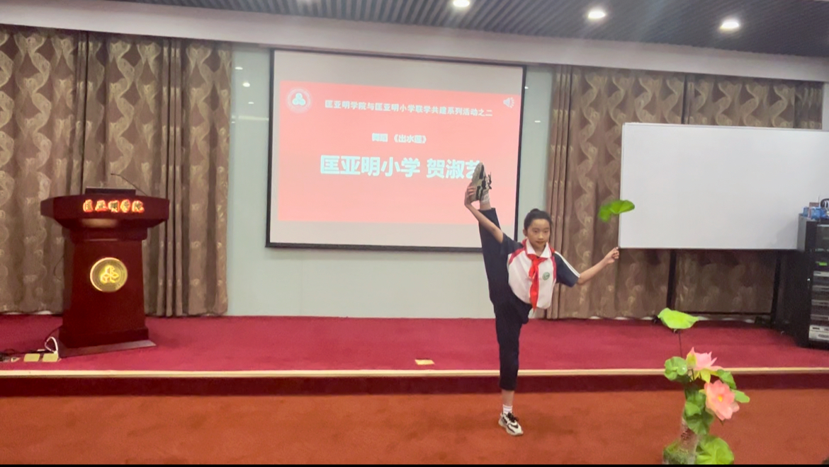 活动中,与会同学们给大家带来精彩的文艺表演。匡亚明小学贺淑艺同学表演了舞蹈《出水莲》,婀娜多姿,如出水芙蓉,赢得阵阵掌声。东京热 2021级林佳雄同学展示了跳花绳,技术娴熟,身手矫健,展现力量与美的结合,获得连连喝彩。