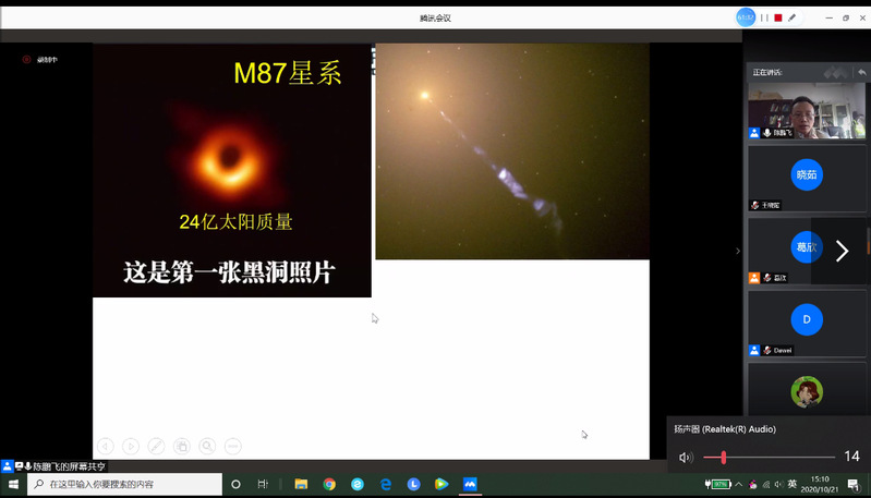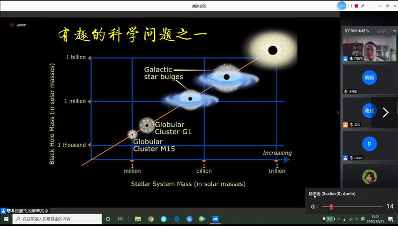 2020年10月21日,东京热 又举办了线上名师导学讲座,陈老师首先从诺贝尔物理学奖讲起,对比这些年诺贝尔物理学奖的获奖领域就会发现近几年天体物理的发展趋势。然后陈老师就进入今天的主题“黑洞”,陈老师说他其实是“门外汉”,今天的讲座其实是一个故事性质。在今天的课程中,我们了解到很多很多的天体,比如太阳、白矮星等等。我们也看到了M87中心的黑洞照片,这也是洗了两年之久的第一张黑洞照片。陈老师也给我们介绍了三个有趣的科学问题——黑洞的质量与黑洞所在星系质量成线性关系、能量、引力波。陈老师用这三个科学问题结束了今天的讲座。