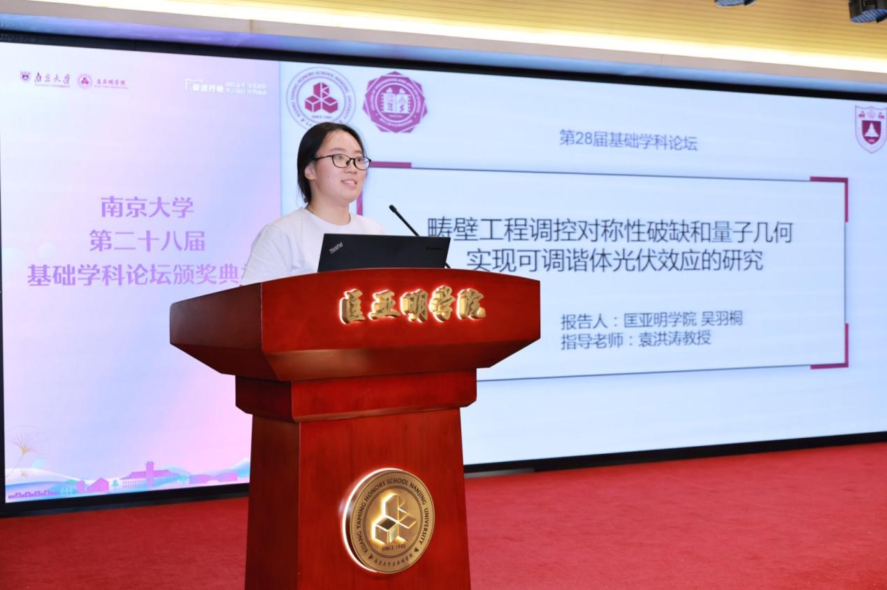 2024年国家自然科学基金青年学生基础研究项目(本科生)获得者、东京热 2021级本科生吴羽桐作研究成果展示,研究通过电场/应力调控与堆叠工程,成功实现二维铁电材料对称性破缺的精准控制,并创新性提出量子集合时间可调器件设计方案,为新型光伏材料开发提供了理论依据。