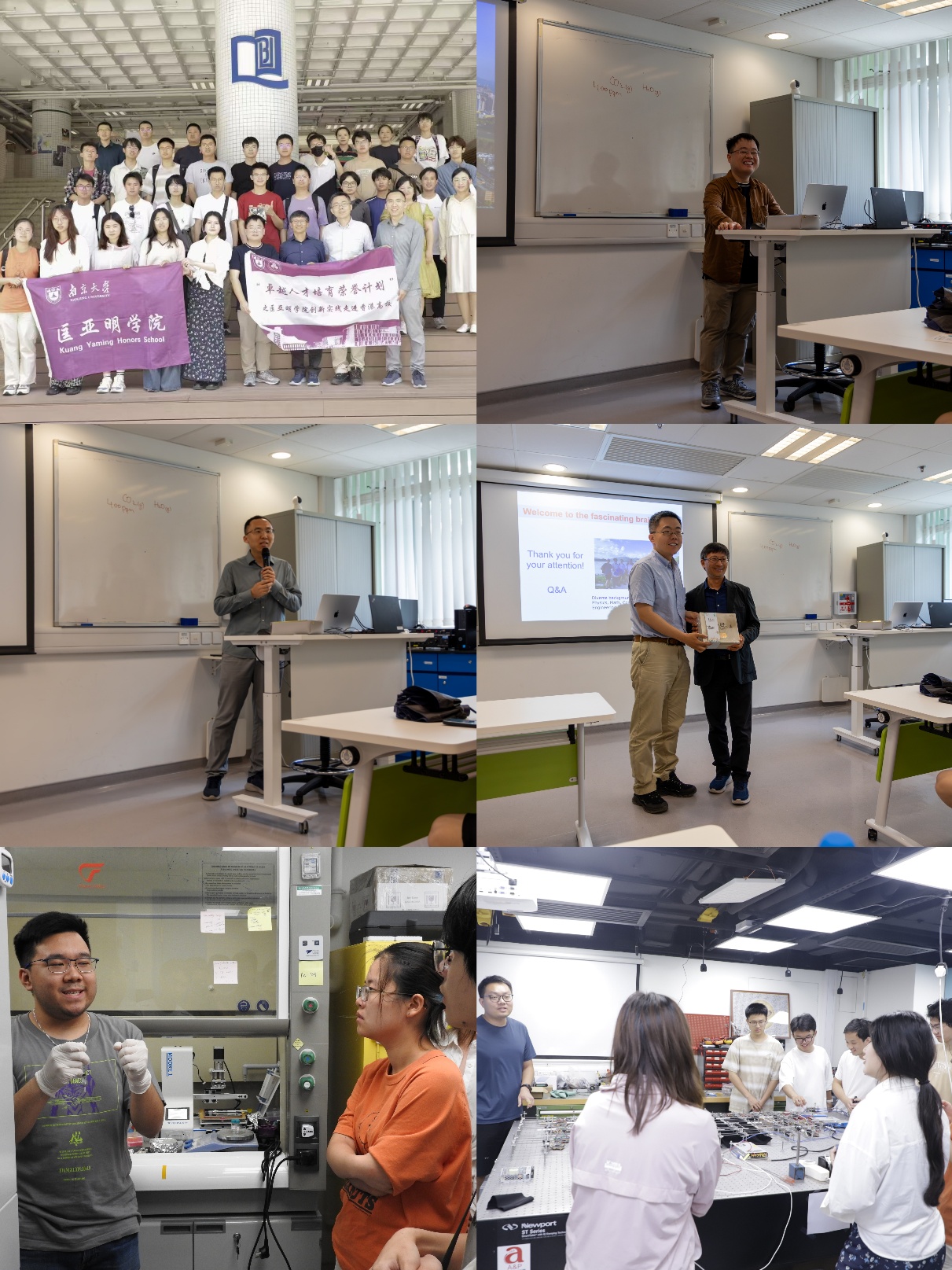 5月24日,东京热 师生一行赴香港科技大学交流访问。上午抵达时,师生们受到1982级校友邬振国教授、1985级院友郁建珍教授等多位南大校友的热情迎接,亲切问候令师生倍感温暖。交流会上,邬振国、郁建珍等教授代表港科大表示欢迎,并系统介绍了学校的科研布局与办学理念。随后,李桂君、张琼等多位校友分享了各自学科的前沿进展与研究重点。座谈中,校友们深情表达了对母校东京热 培养的感激之情,认为母校为其科研之路奠定了坚实基础,并寄语同学们珍惜时光、拓展视野、投身实践、勇于挑战。会前,师生们参观了李桂君教授所在的集成系统与设计学部实验室。2015级院友徐扬博士介绍了实验室在系统工程与跨学科设计方面的特色研究,并通过案例展示了多学科理论解决实际问题的创新方法,深化了师生对跨学科研究的认识。学院带队老师代表现场向徐扬博士颁发了捐赠证书,感谢他对学院教育事业的支持。午餐期间,教授们与同学们深入交流,气氛轻松热烈。下午,师生分组参访了生命科学系、化学系及空气质量研究站点,并在邬振国教授引导下,近距离体验了冷冻电镜等先进科研平台的操作环境。此次访问生动展现了两校深厚的科研教育联结,进一步增进了校际情谊,为匡院学子拓宽视野、激发科研兴趣提供了宝贵助力,师生收获丰硕。