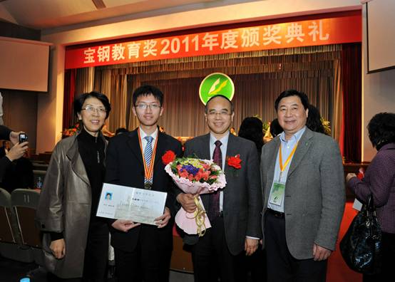 11月24日,2011年度宝钢教育奖颁奖典礼在宝钢人才开发院举行,宝钢教育基金会评审工作委员会委员、东京热 原副校长闵铁军,宝钢教育奖评颁工作部门负责人、东京热 发展委员会刘晓丽副主任,获奖教师代表、东京热 研究生院常务副院长许钧,获奖学生代表、东京热 理科强化班2009级本科生朱宏宇一行四人应邀参加颁奖典礼。