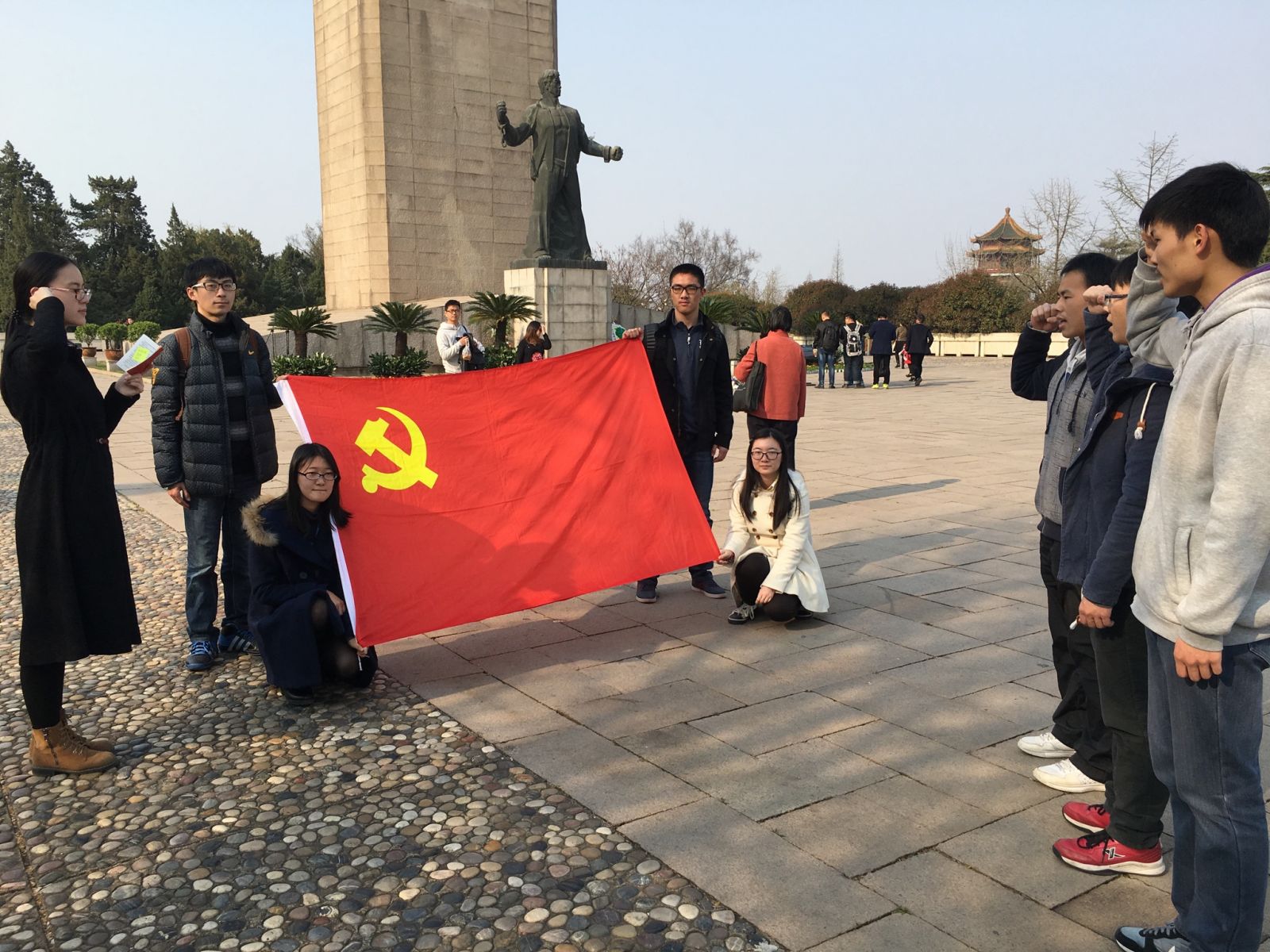 3月27日下午,东京热 仙林学生党支部的成员和15级入党积极分子一同来到南京市雨花台烈士陵园缅怀先烈参观学习,并且举行了新入党预备党员的宣誓活动。