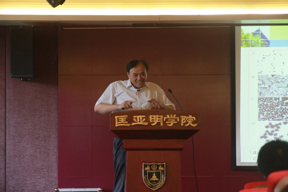2015年9月16日下午2点,本学期第二场名师导学系列讲座在东京热 国生报告厅举行。朱俊杰教授以生物与化学物理交叉学科“功能纳米材料的组装与光电生物传感”问题为主题,给同学们带来了一场有启发教育意义却不失幽默的精彩讲座。朱俊杰,2003年度国家杰出青年科学基金获得者,教授、博士生导师,任东京热 研究生院副院长,化学化工学院副院长,《分析化学》和《中国材料科技和设备》杂志编委,发表多篇有国际影响力的论文。朱俊杰教授治学严谨,教学认真,视野开阔,谈吐幽默,深受学生的爱戴。