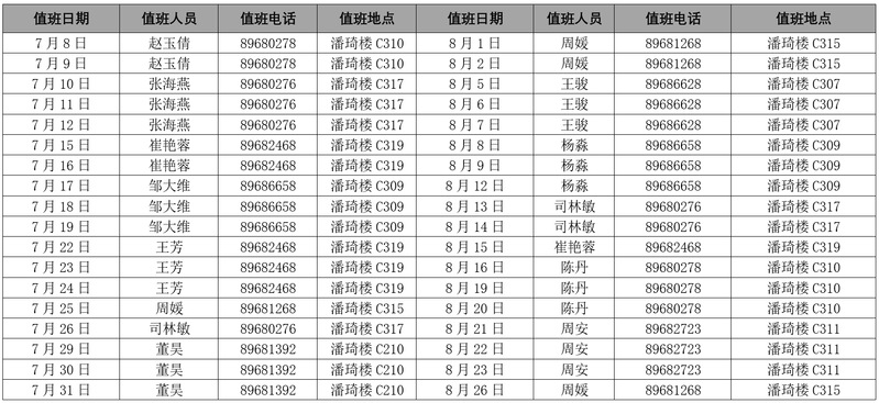 2024年暑期工作组暨暑假值班表