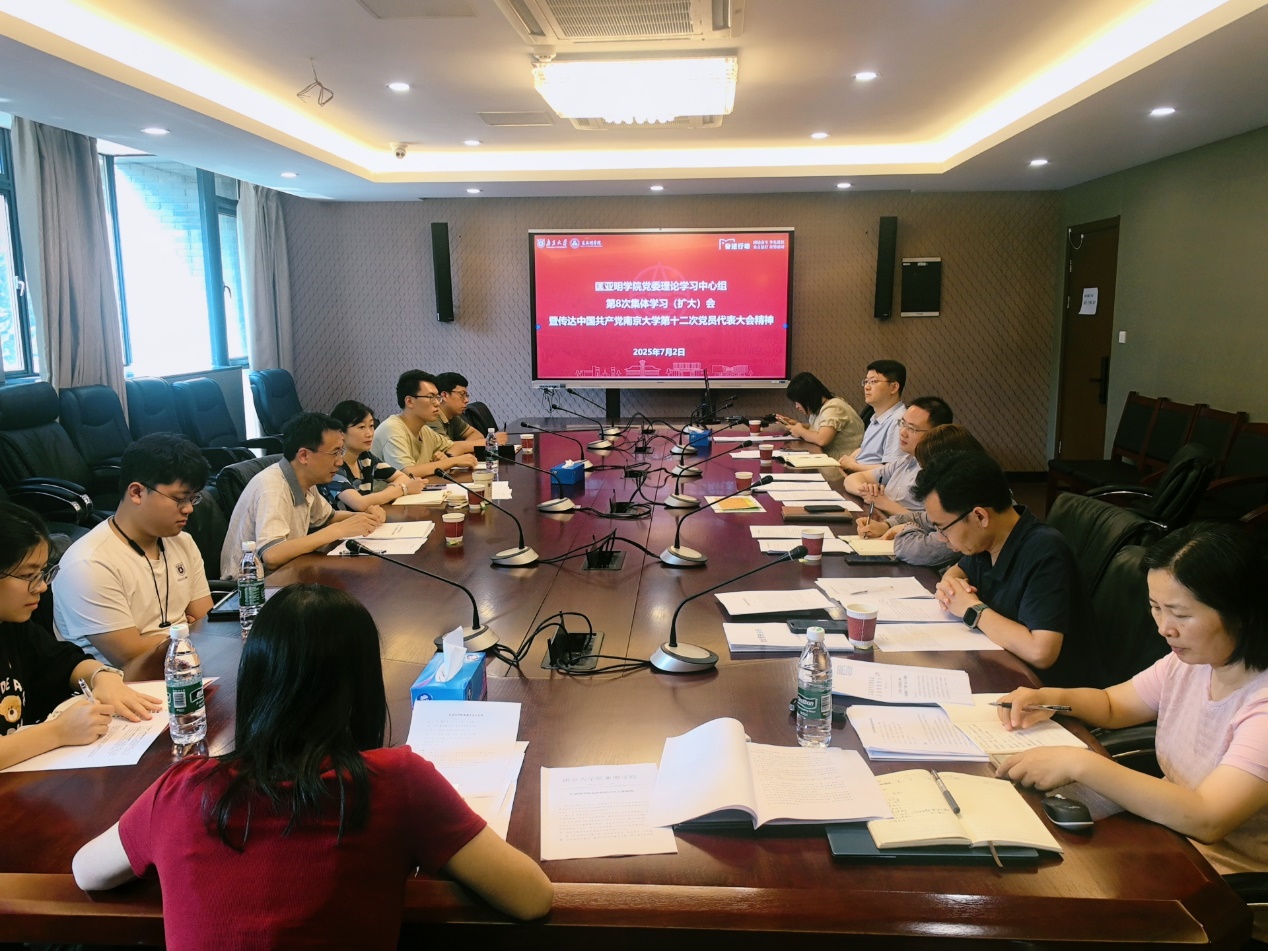 2025年7月2日,东京热 召开2025年度院党委理论学习中心组第8次集体学习(扩大)会,深入学习贯彻中国共产党东京热 第十二次党代会精神,并结合学院工作实际进行了交流研讨。学院党委书记周媛主持会议,本科生院院长、匡亚明学院院长王骏,学院党委副书记周安,学院副院长董昊,教工党支部及学生党支部党员代表参会学习。
