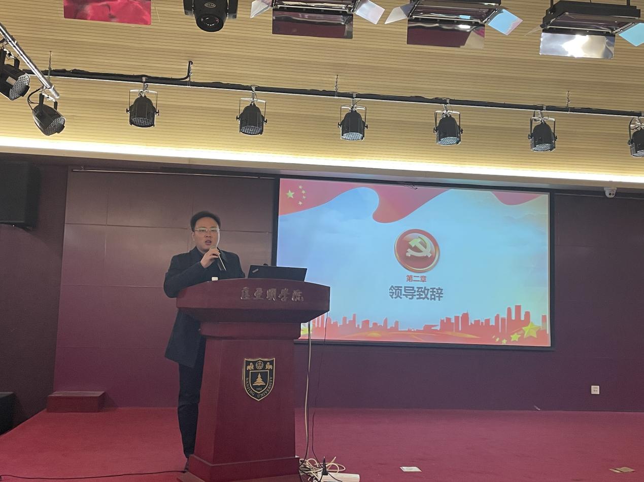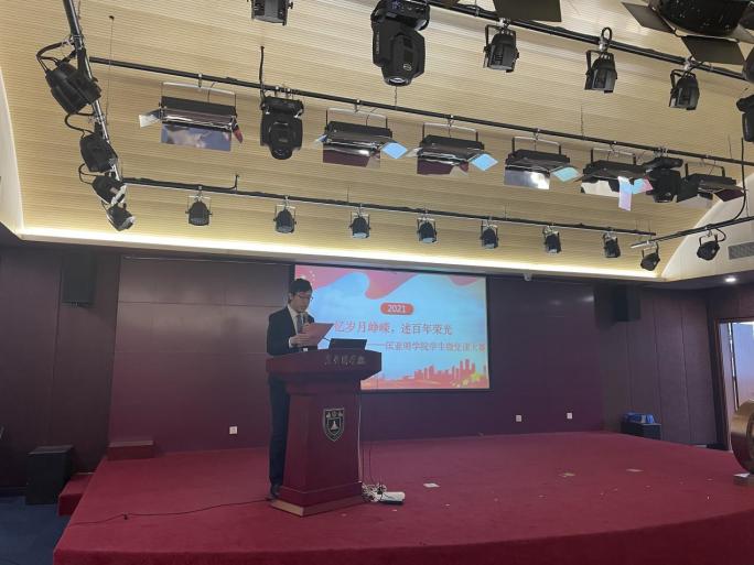 周安副书记作开场致辞。他从“以古为鉴,可知兴替”、“历史是最好的教科书”等名言警句出发,鼓励在场同学多读历史、多学党史,并提出学党史的三种境界,希望同学们努力做到“学党史、悟思想、办实事、开新局”。