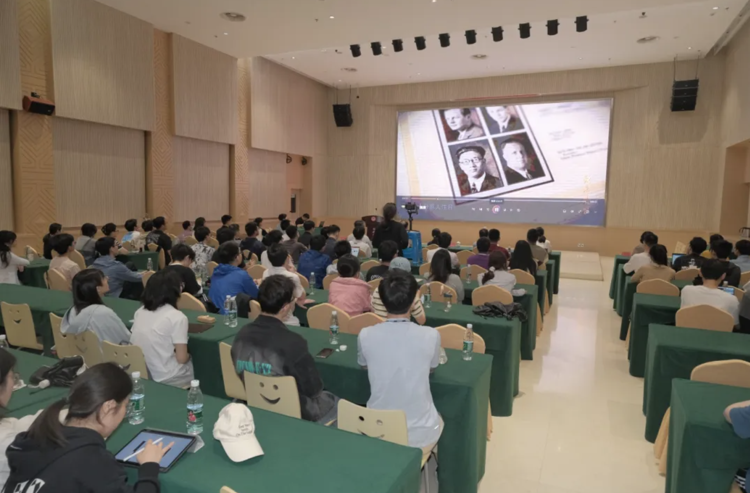 一代人有一代人的使命,一代人有一代人的担当。百年前的青年,为救国而留学,为报国而牺牲;当代的我们,为兴国而留学,为强国而奉献。马小松教授向在座师生们分享了自己留学归国、科技报国的经历,他从奥地利维也纳大学博士毕业后,师从2022年诺贝尔物理学奖得主安东·塞林格教授,在奥地利科学院量子光学与信息研究所度过了7年的研究生涯,后又赴美国耶鲁大学完成博士后研究。他从事量子光学实验、量子通信与量子模拟的实验研究,在利用现代量子光学的实验技术,实现对单光子与多光子量子态的产生、调控与探测,以及量子通信与量子信息技术的应用方面,发表了很多国际领先的科学成果。他鼓励同学们要树立强国梦想、珍惜青春时光、把握优质资源、参与国际交流、实现个人成长、助推科技自强、报效伟大祖国。