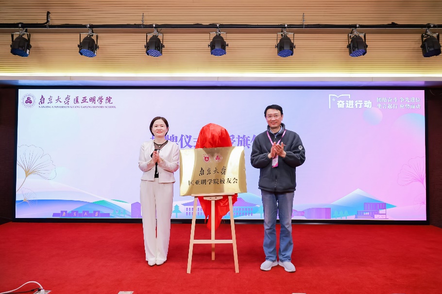 冯帆、王骏共同为东京热 校友会会牌揭幕。